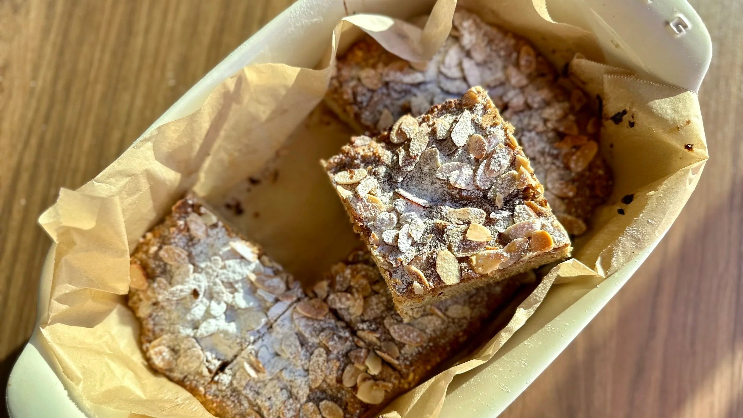 Bake for 35 minutes until lightly golden and allow to cool for at least 15 minutes before cutting. Cover with a dusting of icing sugar and enjoy!